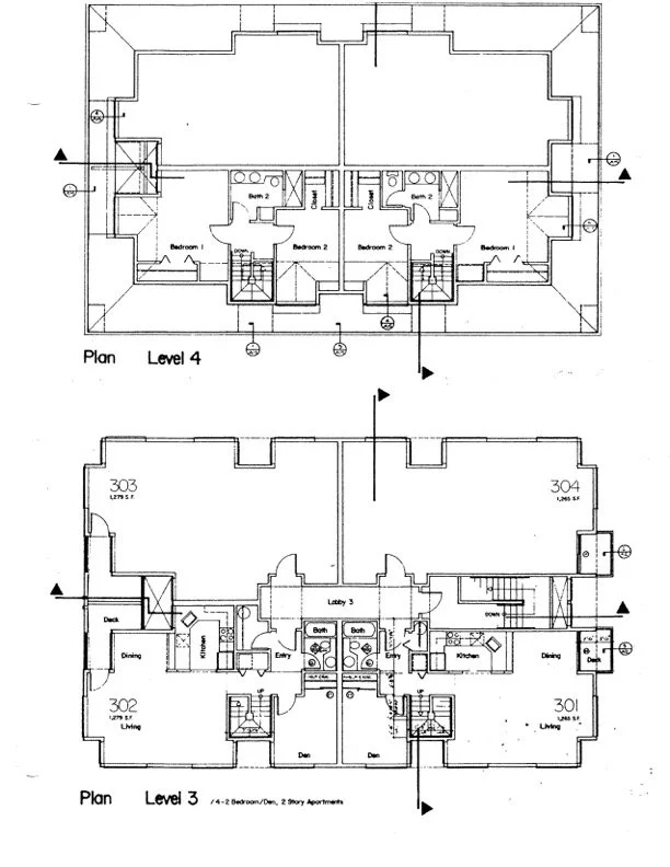 3 bedroom/2 story apartments with skylights